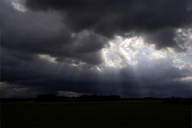 Mandag er der skyet langt de fleste steder i landet, og der ligger en smule småregn over den østlige del af landet.