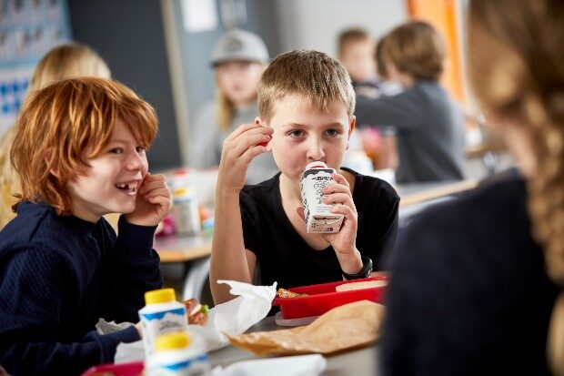”Det er vigtigt at gøre børn bevidste om fordelene ved at spise sundt og varieret uden løftede pegefingre og alvorsord. Det er vigtigt, for børn har brug for næring til læring. De har en lang skoledag, der kræver masser af energi. Derfor er det nødvendigt med en god madpakke og en drikkedunk med vand – og så anbefaler vi, at man supplerer madpakken med en skolemælk.”